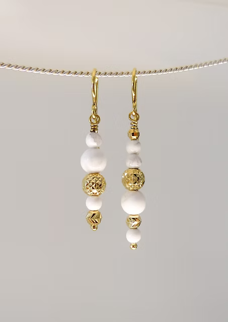 Ohrhänger "Pilula" asymetrisch mit Howlith Silber 925 vergoldet