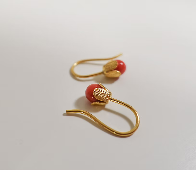 Ohrhänger "Blume" in Silber 925 vergoldet mit Koralle