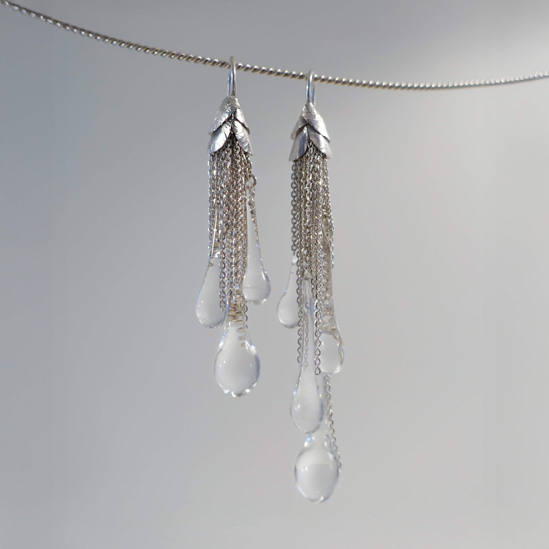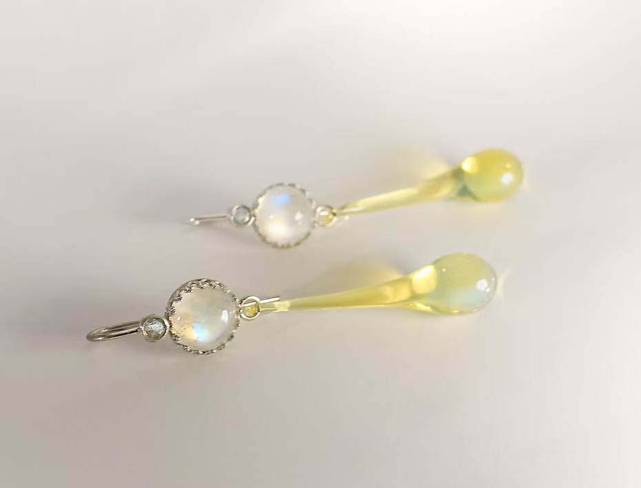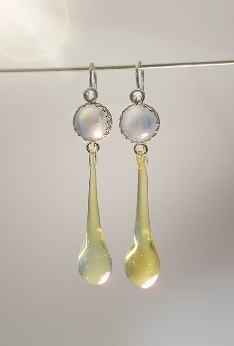 Ohrhänger "Wasserfall" mit Regenbogen-Mondsteintropfen