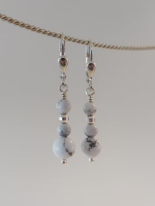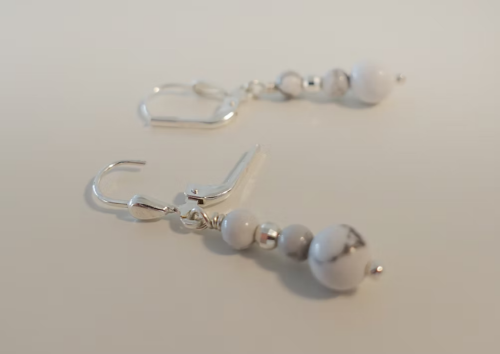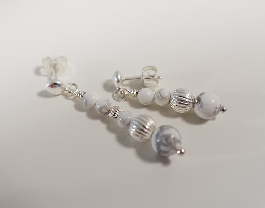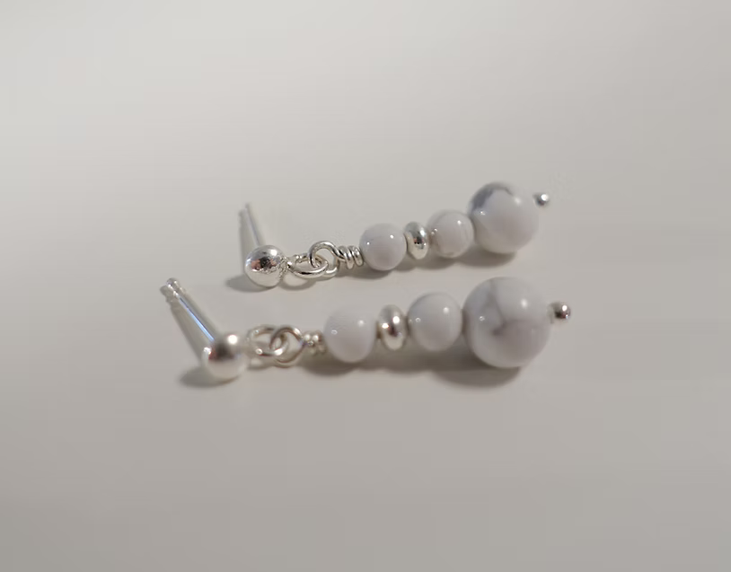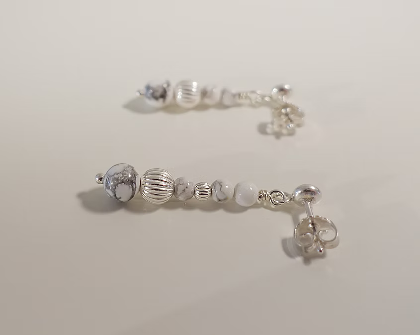 Ohrhänger "Pilula" mit Howlith und facettierter Silberkugel