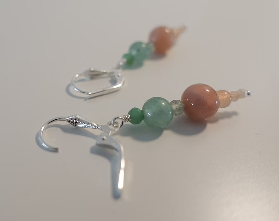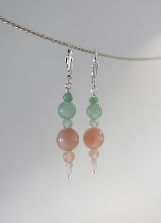 Ohrhänger "Pilula" mit Chrysopras, Aventurin und Mondstein