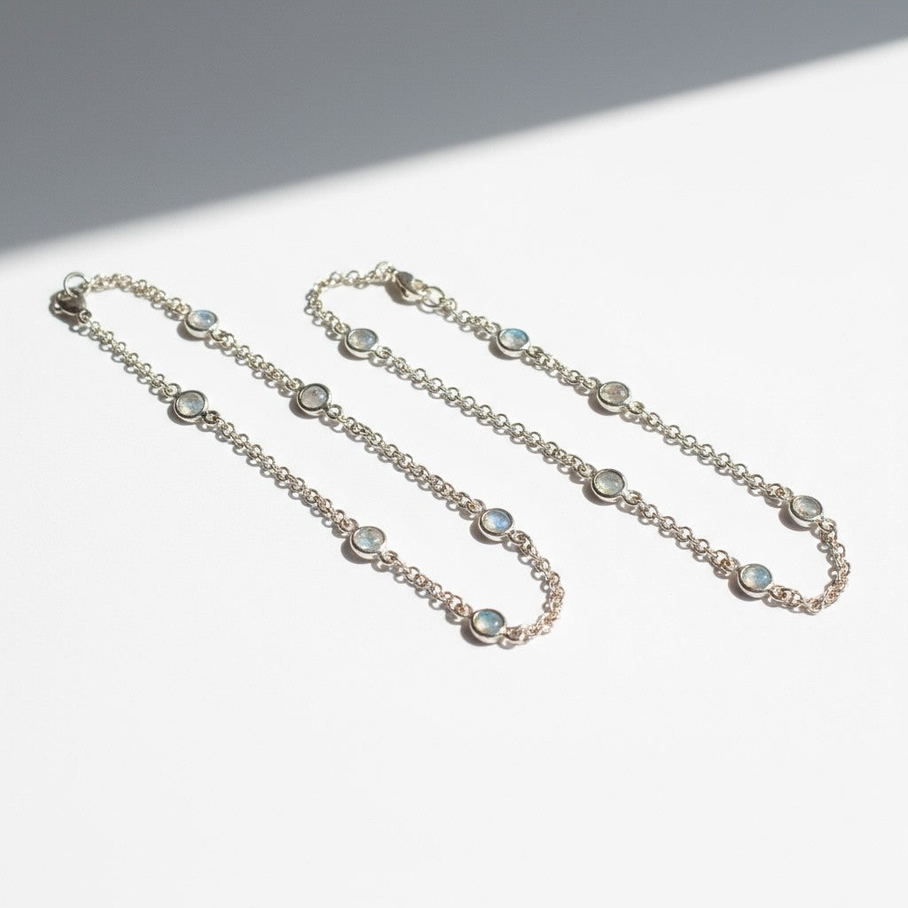 Ankerkette in Silber 925 mit gefassten Regenbogen - Mondsteinen