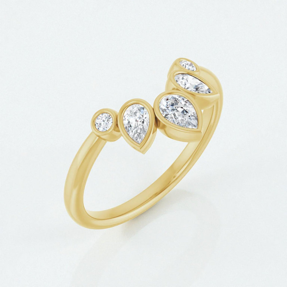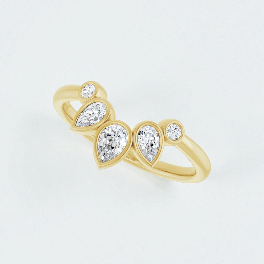 Ring Aurea - 3 Brillanten in Tropfenform funkeln in einer Lünettenfassung