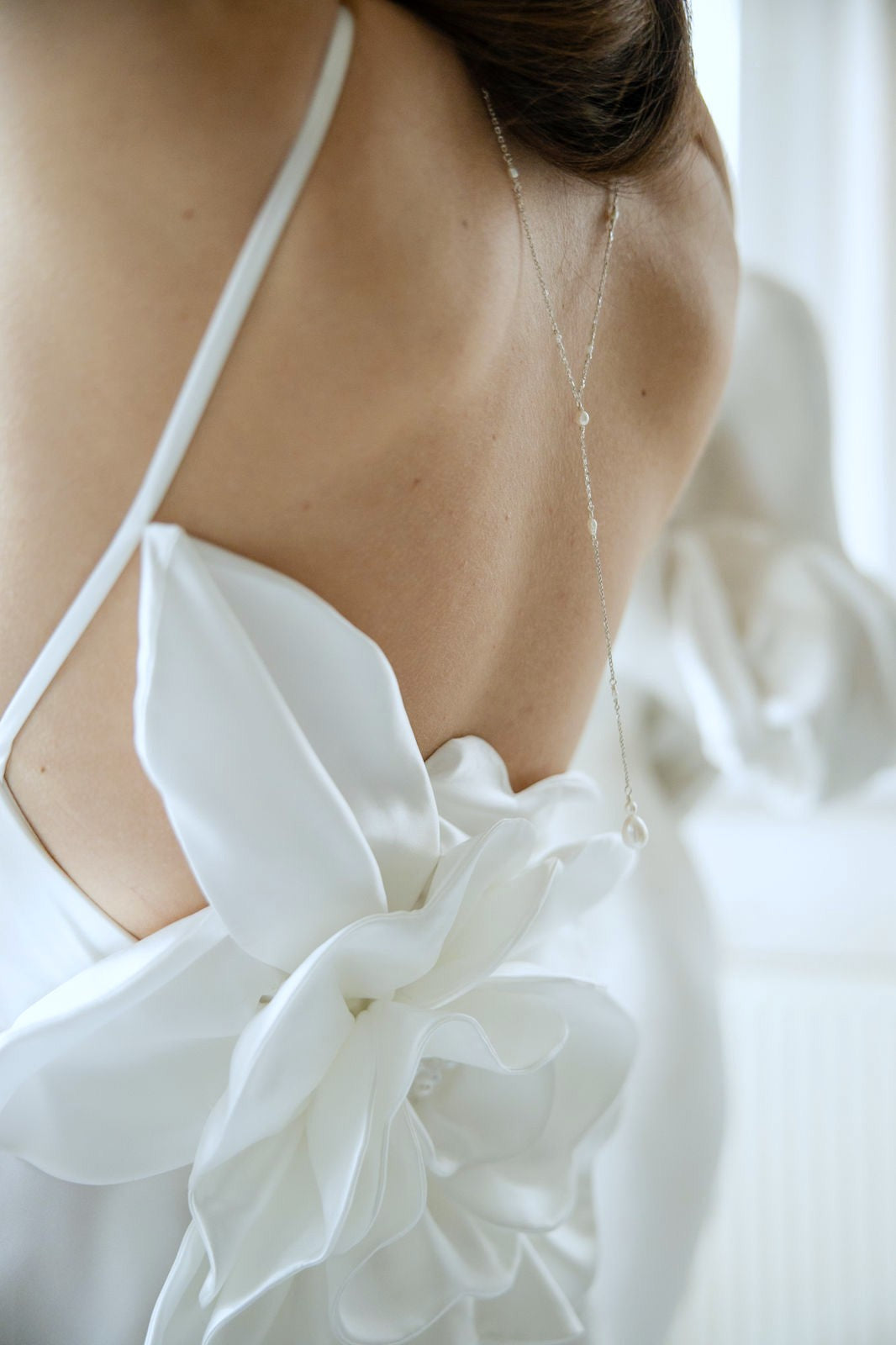 Feine Rückenketten Silber 925 mit weissen Süsswasserperlen