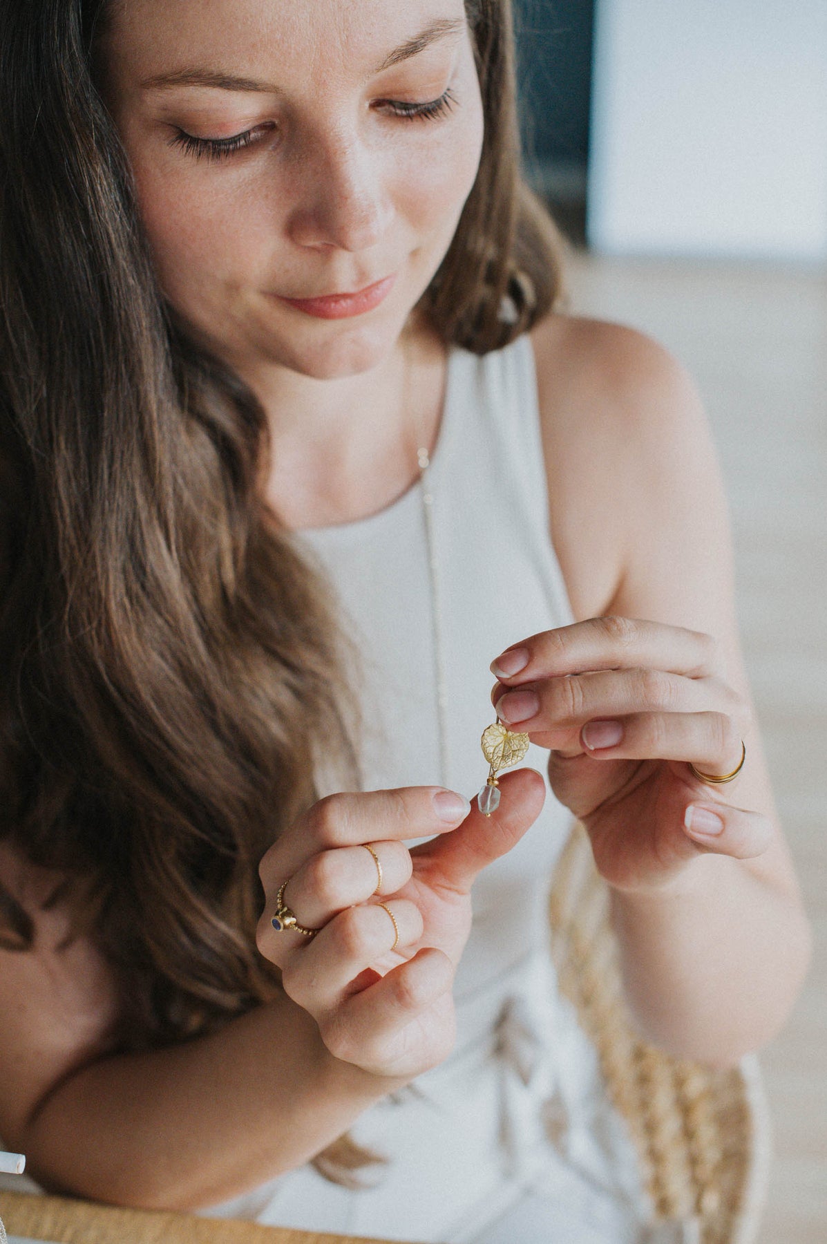 So hast du zwei Schmuckstücke in einem! Das Pflanzenblatt stammt von einer Gundelrebe.