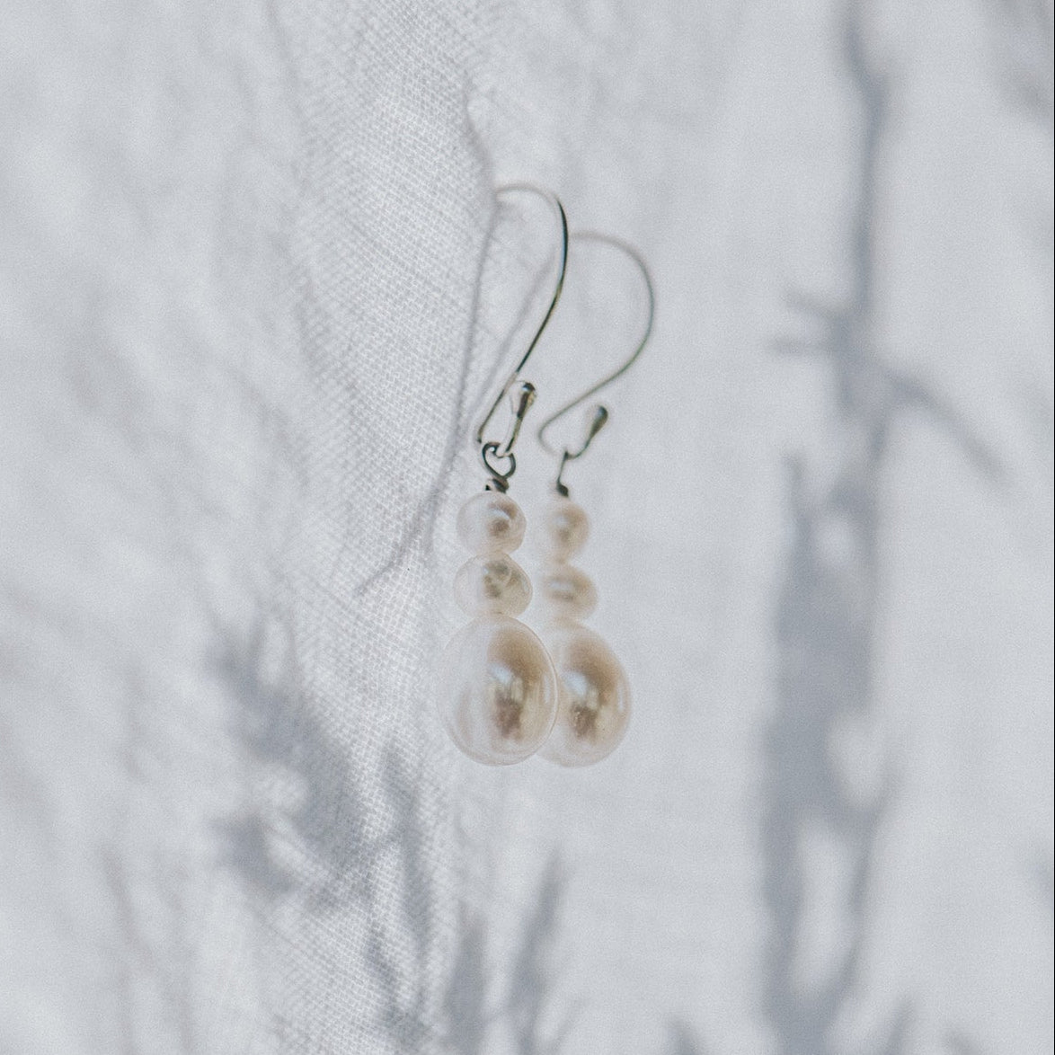 Ohrhänger in Silber 925 mit feinen Süsswasserperlen.